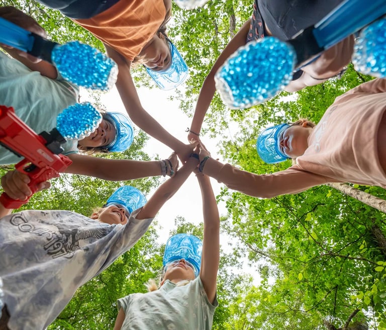 Cette activité collective ludique, accessible à tous, propose des parties riches en sensations où l’objectif peut être de défendre une zone, capturer un drapeau ou remporter un défi d’équipe.
